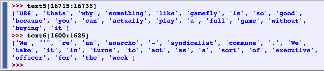 slicing – useful for gathering manageable pieces of text from larger text