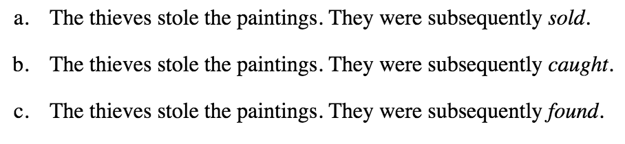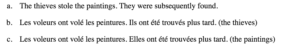 In this example, it is important to know what object is being talked about because in some languages, gender matters. If it were to be the thieves that were found, the translation would be masculine. If it were to be the paintings however, the translation would be feminine.