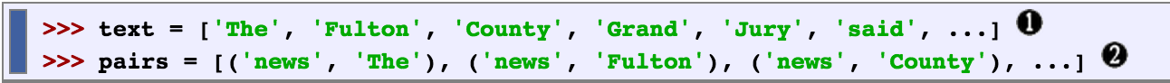 bigram – a list of word pairs