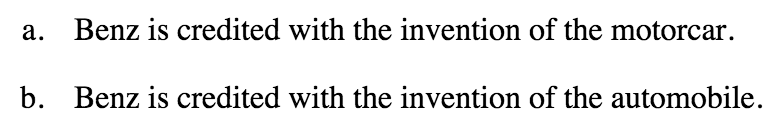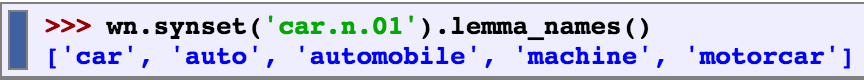 Since everything else in the sentence has remained unchanged, we can conclude that the words motorcar and automobile have the same meaning, ie. they are synonyms.