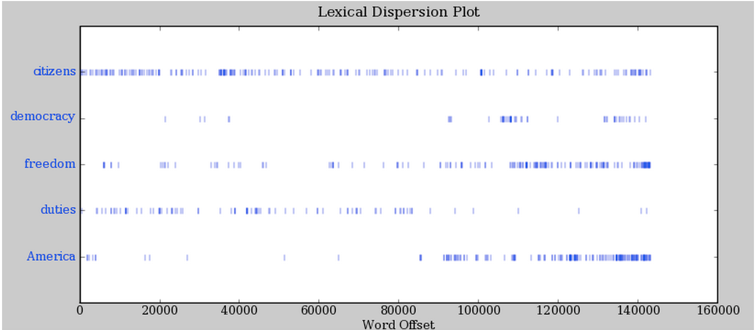 .dispersion_plot – allows us to visually see patterns of word usage in a text