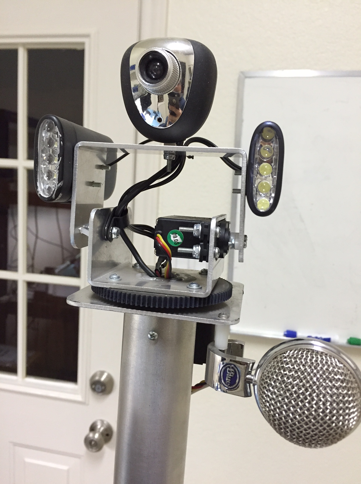 A pan-tilt camera located at the top of the robot is powered by two RC-servos. They allow the camera to pan and tilt based on user input. They are controlled by Arduino. Careful analysis of these components and further research of their functions will permit us to add and modify the sub-systems of the RP2W.